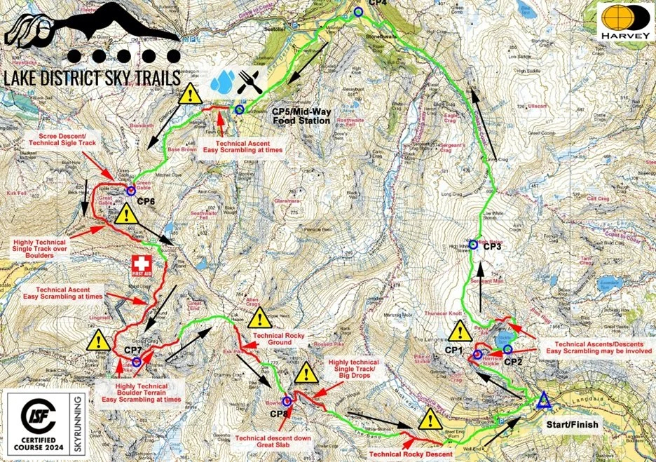 The 40km/2,800m+ RAB Scafell Sky Race first took place in 2017, and is the brainchild of Charlie Sproson, owner of Lake District Sky Trails & Mountain Run - one of the key instigators of UK Skyrunning since 2015. You can discover the route in full on our Strava account HERE.